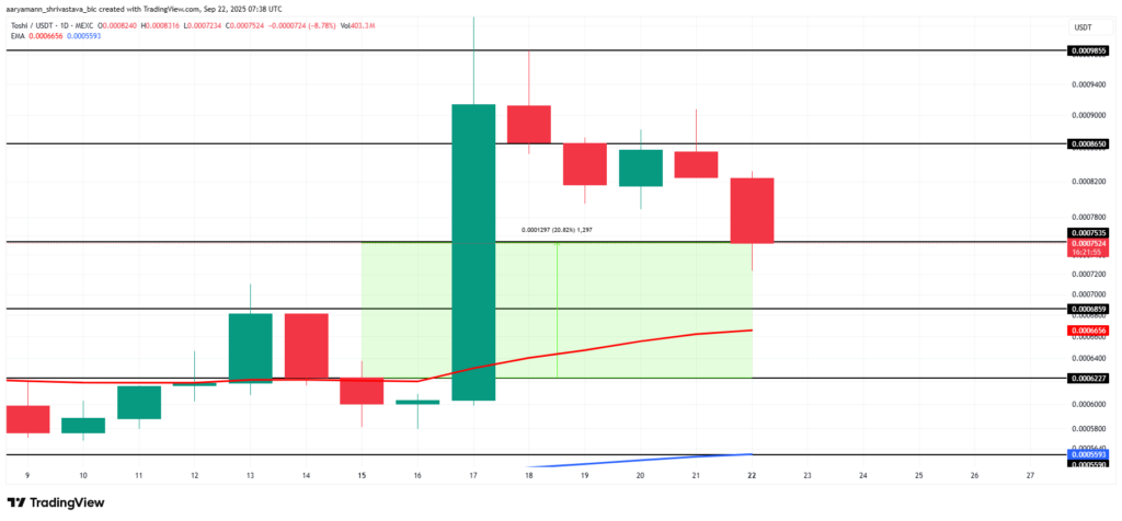 دادههای تکنیکال از جمله قرار گرفتن میانگین متحرک ۵۰ روزه در زیر کندلها نشان میدهد که مومنتوم صعودی همچنان زنده است. در صورت تثبیت، قیمت توشی توانایی جهش به سمت ۰.۰۰۰۸۶ دلار و حتی ۰.۰۰۰۹۸ دلار را دارد.