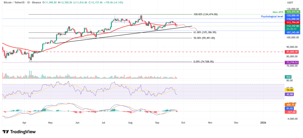 قیمت بیت کوین در روز جمعه نتوانست روی سطح حمایتی ۱۱۶,۰۰۰ دلار دوام بیاورد و طی چهار روز بعد با افتی ۳.۱۹٪ به زیر میانگین متحرک نمایی ۵۰ روزه در محدوده ۱۱۳,۷۹۴ دلار سقوط کرد. در زمان نگارش مطلب، بیت کوین حوالی ۱۱۲,۵۹۹ دلار معامله میشود و این موضوع فشار فروش را در بازار تقویت کرده است.