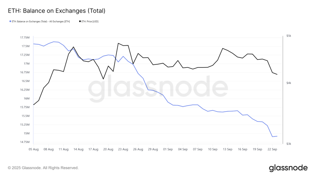 یکی از نکات کلیدی در وضعیت فعلی بازار، کاهش مداوم عرضه اتریوم در صرافیهاست. موجودی این رمزارز در صرافیها حالا به پایینترین سطح در ۹ سال اخیر رسیده است. چنین وضعیتی معمولاً نشانهای از خروج داراییها از پلتفرمهای متمرکز و ورود آنها به کیف پولهای شخصی است؛ این اقدام بیشتر از معاملات کوتاهمدت و سفتهبازانه، با استراتژیهای انباشت و نگهداری بلندمدت همخوانی دارد.