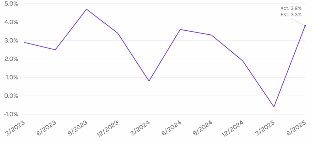 اقتصاد قوی ایالات متحده معمولاً از بازار سهام حمایت میکند؛ چراکه موجب رشد سود شرکتها و کاهش ریسک در نظر گرفته میشود، خصوصاً در شرایطی که نگرانیها درباره تشدید جنگ تجاری رو به افزایش است. دولت دونالد ترامپ، رئیسجمهور ایالات متحده، اخیراً دور جدیدی از تعرفههای وارداتی را معرفی کرده که شامل عوارض ۱۰۰ درصدی بر داروهای دارای حق اختراع نیز میشود.