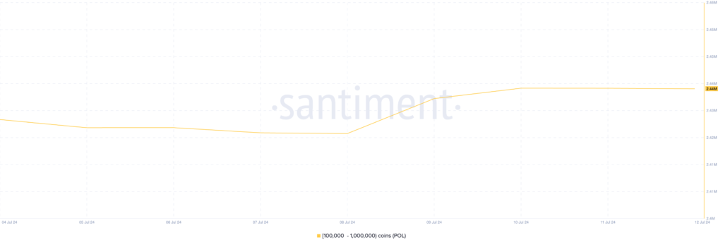 توکن جدید اکوسیستم پالیگان (POL) نیز طی هفته گذشته با بیش از ۱۱٪ افت مواجه شده است. با این حال، دادههای Santiment نشان میدهد کیف پولهایی که بین ۱۰۰,۰۰۰ تا ۱ میلیون POL در اختیار دارند، در همین دوره خریدهای خود را افزایش داده و بیش از ۲۲۰,۰۰۰ POL به داراییهای خود افزودهاند.