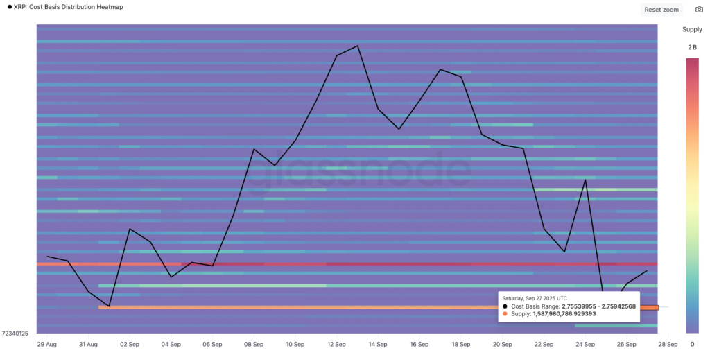 از سوی دیگر، دادههای گلسنود (Glassnode) نشان میدهد که حدود ۱.۵۸ میلیارد XRP در همین محدوده قیمتی خریداری شده است و این موضوع اهمیت این سطح را بیش از پیش برجسته میکند.