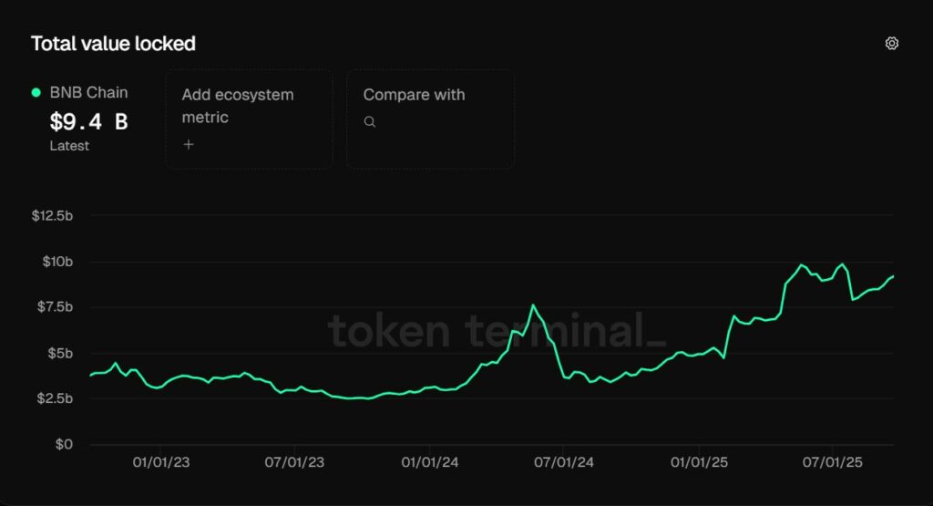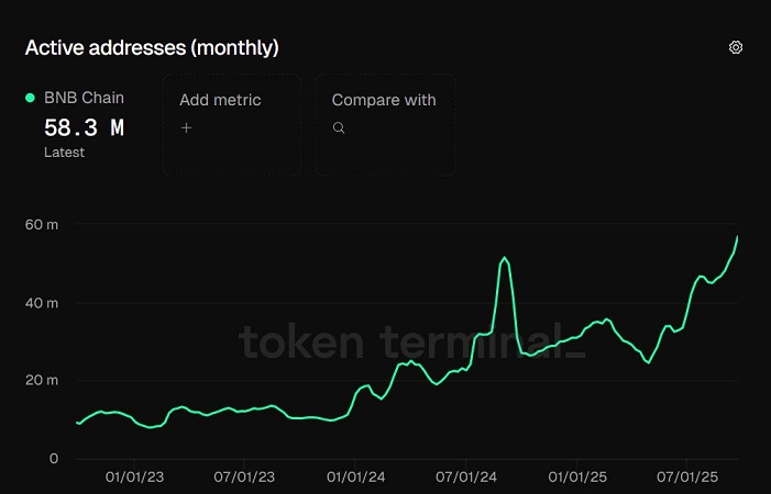 براساس دادههای TokenTerminal، در سپتامبر امسال شمار آدرسهای فعال ماهانه در زنجیره BNB به بیش از ۵۶.۴ میلیون رسید؛ این رقم ۹.۵٪ بالاتر از رکورد قبلی در سپتامبر ۲۰۲۴ است.
