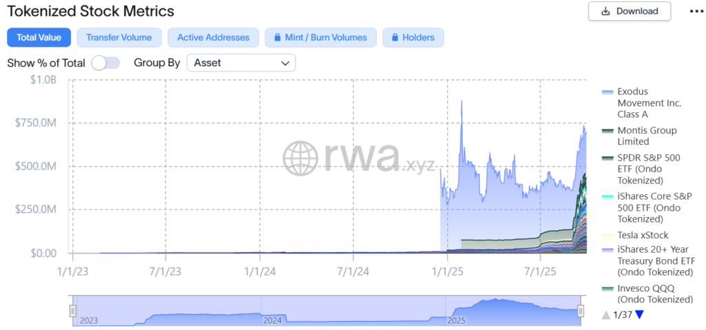 طبق آمار، تاکنون بیش از ۳۱ میلیارد دلار دارایی مختلف توکنیزه شده است، اما سهم سهام توکنیزهشده تنها حدود ۲٪ از این بازار است. با این حال، همین بخش کوچک طی ۱۰۰ روز گذشته تقریباً دو برابر شده که نشاندهنده سرعت بالای پذیرش آن در بازار است.