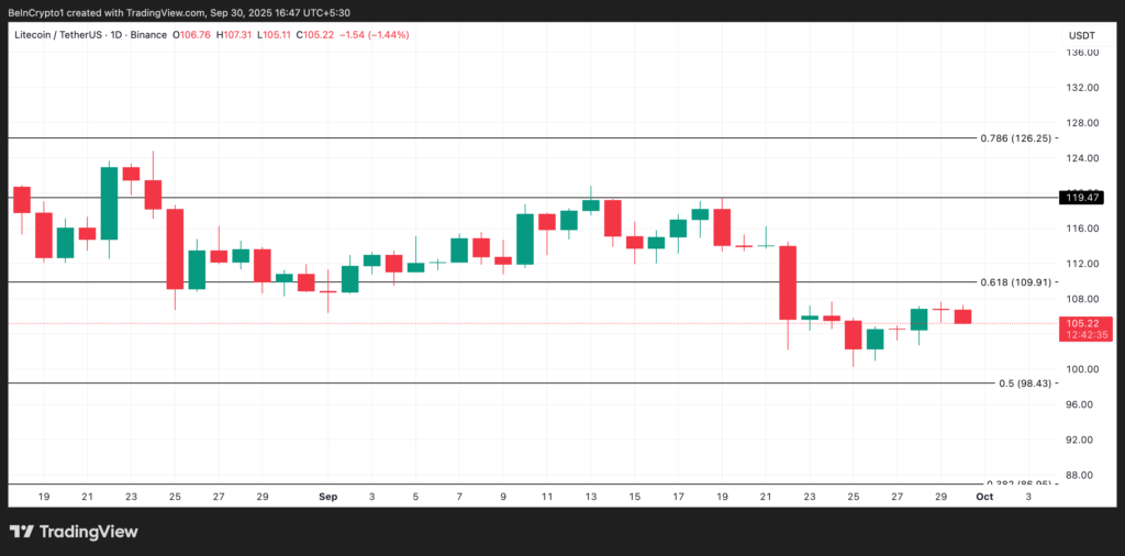 در حال حاضر قیمت لایت کوین به ۱۰۵.۹۳ دلار رسیده و نسبت به ۳۰ روز گذشته حدود ۴.۱۳٪ کاهش داشته است. همین افت باعث شده پنجرهای برای انباشت شکل بگیرد و نهنگها بهوضوح روی بازگشت قیمتی در هفتههای آتی حساب باز کردهاند.