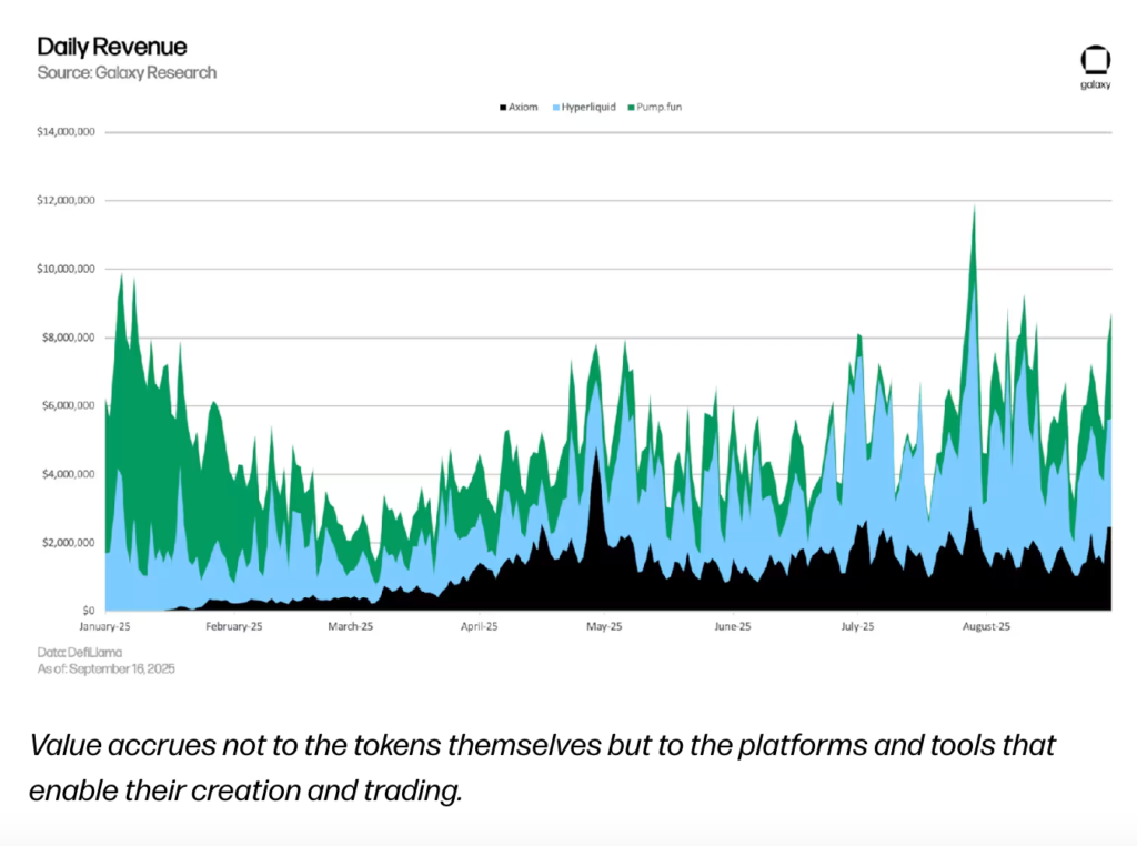 به گزارش گلکسی ریسرچ (Galaxy Research)، سود اصلی جریان میم کوینها نه به جیب معاملهگران خرد، بلکه به حساب پلتفرمهایی واریز میشود که این بازارها را بهراه میاندازند و از هر تراکنش کارمزد میگیرند. این مطالعه نشان میدهد که میم کوینها بیش از آنکه یک ابزار سرمایهگذاری واقعی باشند، بهعنوان سوخت موتور درآمدی پلتفرمها عمل میکنند و آنها از موج هیجان و ورود کاربران جدید نهایت استفاده را میبرند.