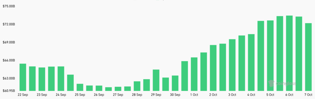 سود باز (OI) معاملات آتی بیت کوین در صرافیهای بزرگ اکنون معادل حدود ۷۲ میلیارد دلار است که تنها ۲٪ کمتر از مقادیر روز دوشنبه محسوب میشود. این رقم نشاندهنده عمق و پویایی بالای بازار مشتقات بیت کوین است که حتی در صورت افزایش تقاضا برای موقعیتهای فروش، برای جذب سرمایه از صندوقهای پوشش ریسک و مدیران سرمایه جهانی حیاتی و ضروری است.