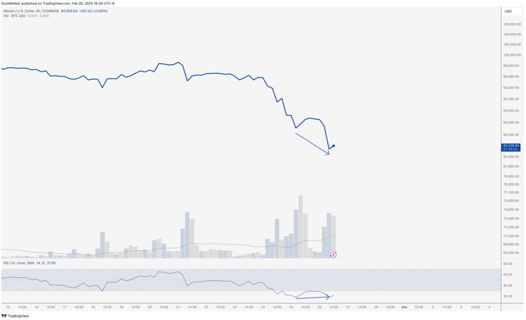 قیمت بیت کوین (BTC) و شاخصهای اصلی بازار سهام روز چهارشنبه پس از آنکه «دونالد ترامپ»، رئیسجمهور ایالات متحده، اعلام کرد قصد دارد در اولین جلسه کابینه خود ۲۵٪ تعرفه بر واردات از اتحادیه اروپا اعمال کند، به پایینترین سطح خود در جلسه معاملاتی کاهش پیدا کردند.