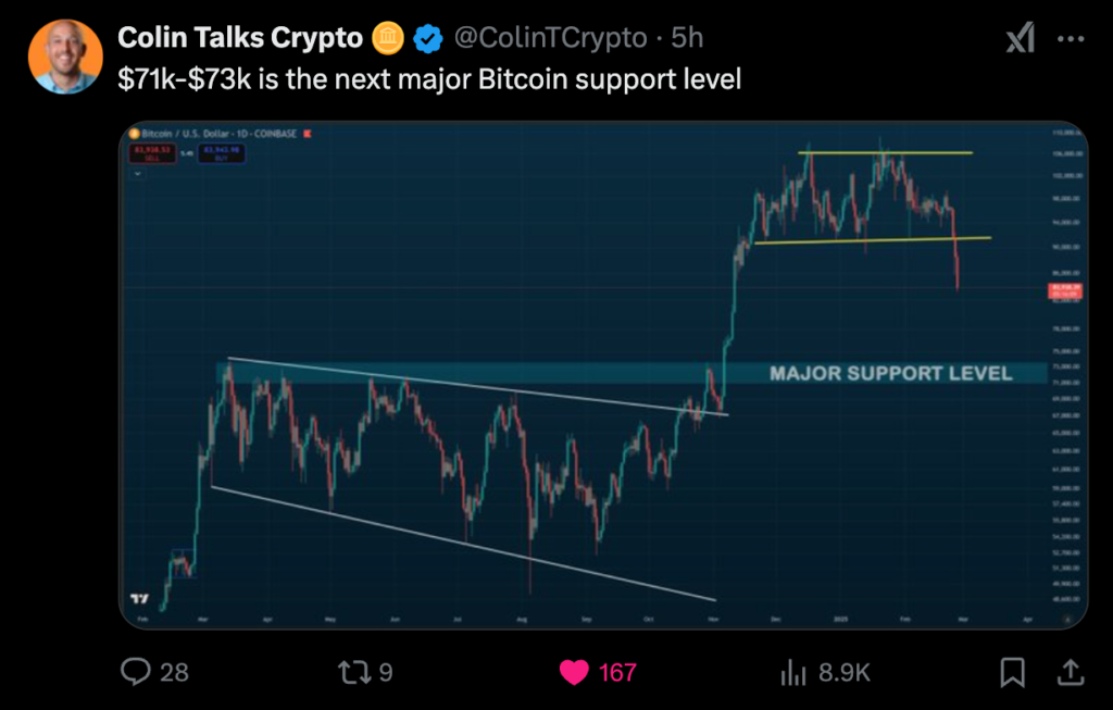 برآوردهای فعلی در میان تریدرها متفاوت است، اما پیشبینیهای فزایندهای درباره کف قیمت بیت کوین در محدوده ۸۰,۰۰۰ تا ۷۱,۰۰۰ دلار وجود دارد.