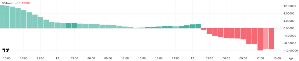 شاخص BBTrend سیگنال منفی میدهد؛ احتمال اصلاح قیمت؟