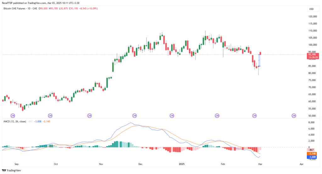 پس از بیانیه دونالد ترامپ درباره ایجاد ذخیره راهبردی ارزهای دیجیتال، قیمت بیت کوین با نوسان شدیدی مواجه شد. این نوسان شدید منجر به باز شدن گپ CME با شکاف بیش از ۱۰٬۰۰۰ دلار در معاملات آتی بیت کوین در بورس کالای شیکاگو (CME) پس از حرکت گسترده بازار در آخر هفته شد.