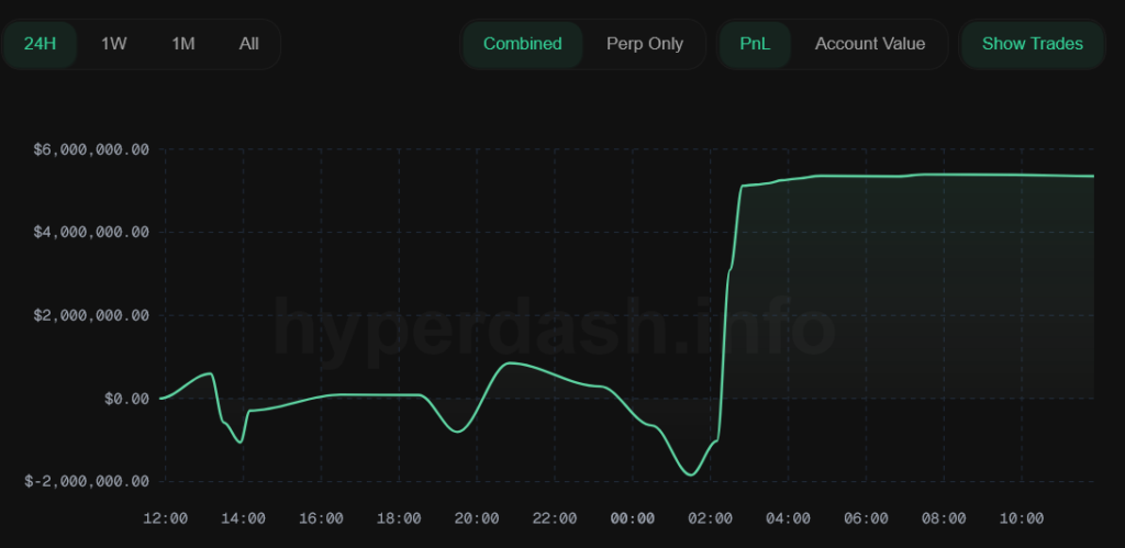 طبق گزارش هایپر دش (HyperDash)، بیشتر پوزیشنهای این نهنگ اکنون بسته شده و سود او از این معاملات به بیش از ۶.۸ میلیون دلار رسیده است.