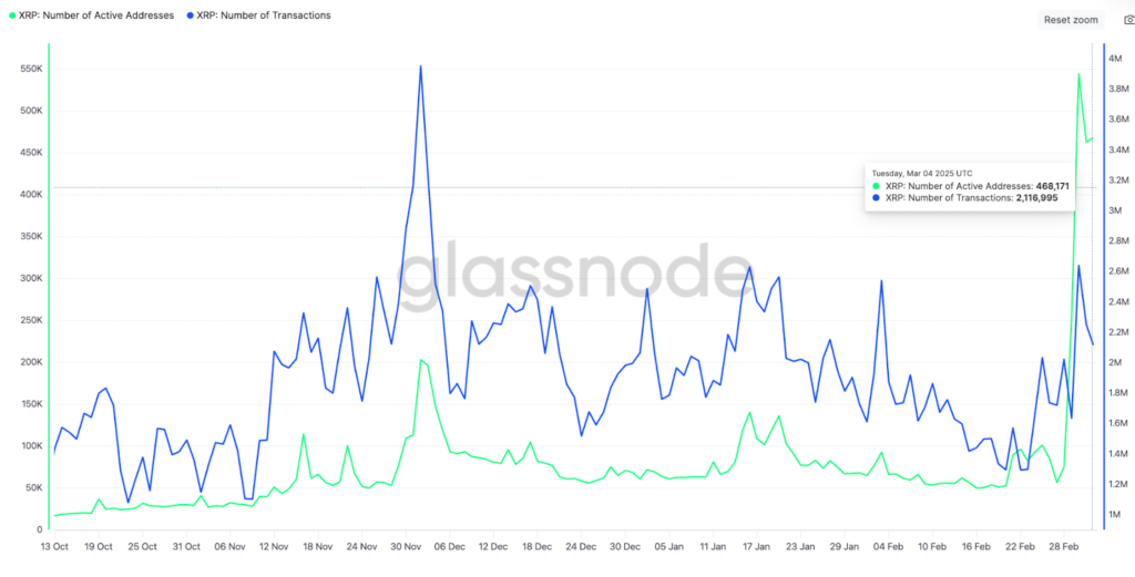 به همین ترتیب، تعداد تراکنشهای ریپل نیز در این دوره ۲۳٪ افزایش یافته، که نشاندهنده رشد استفاده از شبکه است.