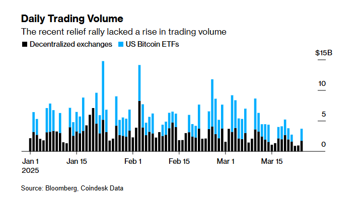 بیت کوین در طول ماه مارس در بازهای میان ۷۶٬۰۰۰ تا ۹۵٬۰۰۰ دلار نوسان داشته است. با این حال، در نبود یک محرک قوی که بتواند قیمت را از این محدوده خارج کند، بازار در حفظ روند صعودی پایدار ناتوان مانده است.