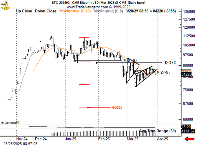 به گزارش میهن بلاکچین، قیمت بیت کوین در تاریخ ۲۸ مارچ (۸ فروردین) برای چهارمین روز پیاپی کاهش یافت و تا کف روزانه ۸۳,۳۸۷ دلار افت کرد. این کاهش قیمت بیت کوین، همزمان با افت بازارهای وال استریت بود؛ جایی که شاخص داو جونز (DOW) ۷۰۰ واحد و شاخص اساندپی ۵۰۰ (S&P 500) نیز ۱۱۲ واحد افت کردند.