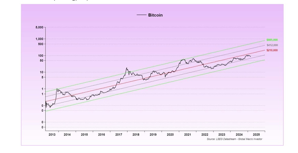 او همچنین پیشبینی کرد که بیتکوین حداقل تا ۲۱۰٬۰۰۰ دلار در اوج چرخه بازار خواهد رسید، اما در ادامه خاطرنشان کرد این امکان وجود دارد که BTC به ۴۱۲٬۰۰۰ دلار یا ۸۰۵٬۰۰۰ دلار نیز صعود کند:
