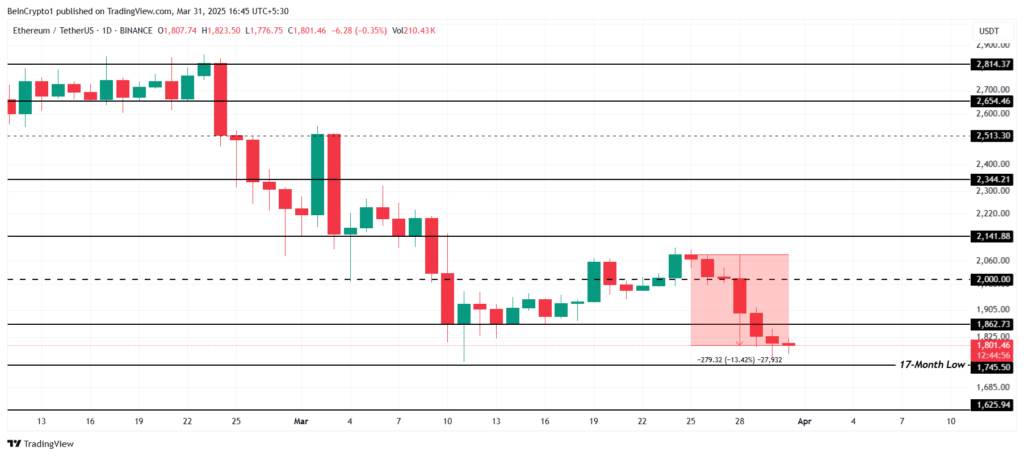 قیمت خرید اتریوم اکنون به ۱,۸۵۲ دلار رسیده که پایینترین سطح آن در ۱۷ ماه اخیر است. این روند نشان میدهد این ارز دیجیتال برای بازیابی شتاب خود دچار مشکل شده و شرایط بازار در حال حاضر برای یک بازگشت سریع مساعد نیست.
