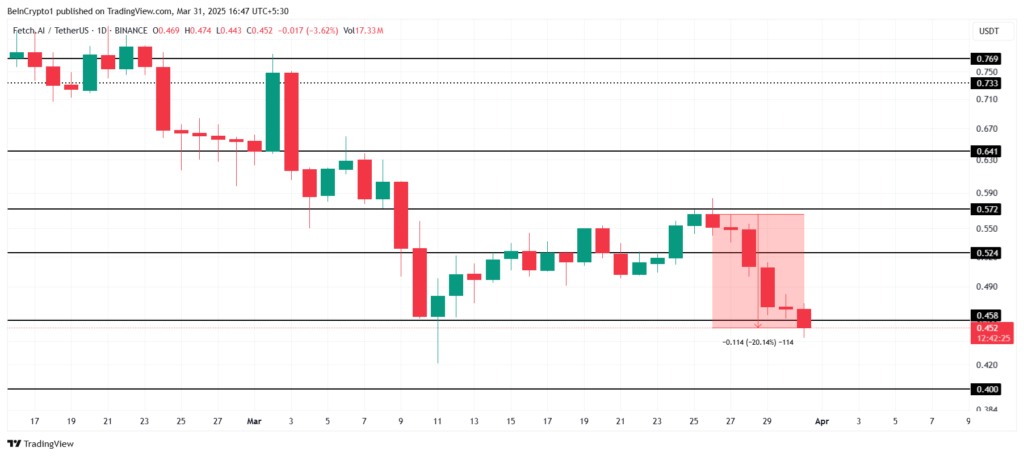 قیمت خرید فت در طول ۵ روز گذشته با ۳.۸٪ افزایش، به ۰.۴۷۲ دلار رسیده است. افت اخیر قیمت FET، فشار زیادی بر این آلت کوین وارد کرده است. با این حال، به دلیل تحولات پیش رو در این شبکه، همچنان امکان بازیابی وجود دارد.