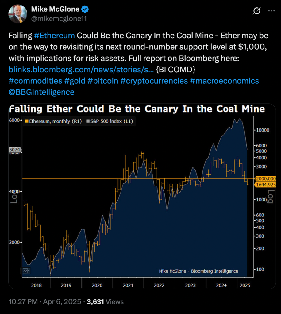 الگوهای فرکتالهای قیمتی اتریوم نشان از سقوط تا سطح ۱,۰۰۰ دلار دارند