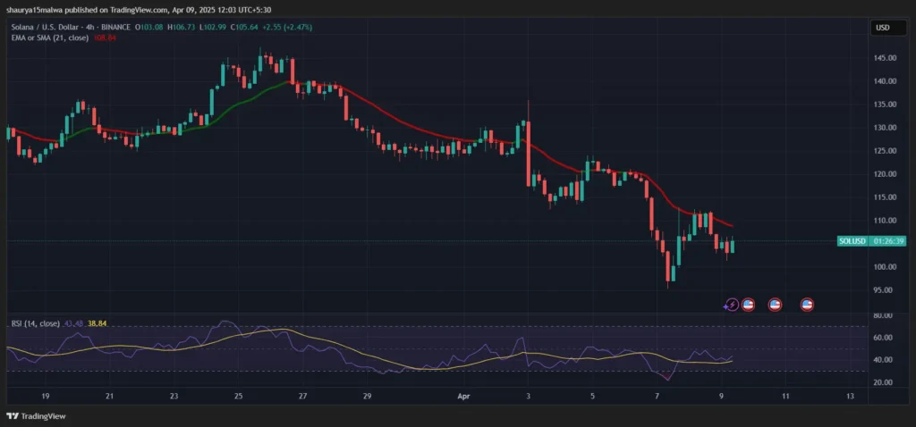 در بازه زمانی بین ۵ تا ۷ آوریل (۱۶ تا ۱۸ فروردین) SOL با افت شدید ۲۲٪ از ۱۲۲.۷۵ دلار به ۹۵.۷۲ دلار رسید و سپس کمی بازیابی شد و در محدوده جدید بین ۱۰۳ تا ۱۱۲ دلار تثبیت شده است.