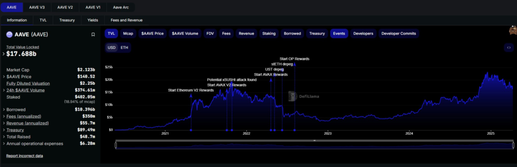 پلتفرم آوه در حال حاضر محبوبترین پروتکل دیفای در اکوسیستم وب ۳ است و ارزش کل قفلشده (TVL) آن تا تاریخ ۹ آوریل به بیش از ۱۷.۵ میلیارد دلار رسیده است.