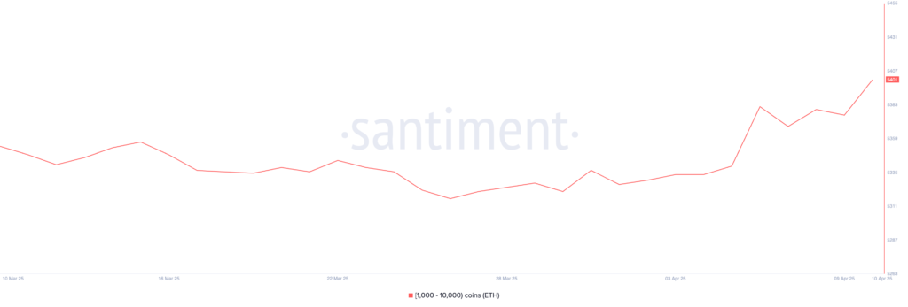 اتریوم نیز از این موج صعودی پیروی کرده و دادههای آنچین نشان میدهد فعالیت نهنگها در این شبکه افزایش یافته است؛ بهطوری که تعداد آدرسهایی که بین ۱,۰۰۰ تا ۱۰,۰۰۰ ETH در اختیار دارند، بین ۹ تا ۱۰ آپریل (۲۰ تا ۲۱ فروردین) از ۵,۳۷۶ تا ۵,۴۱۷ افزایش یافته و به بالاترین سطح خود از سپتامبر ۲۰۲۳ رسیده است.