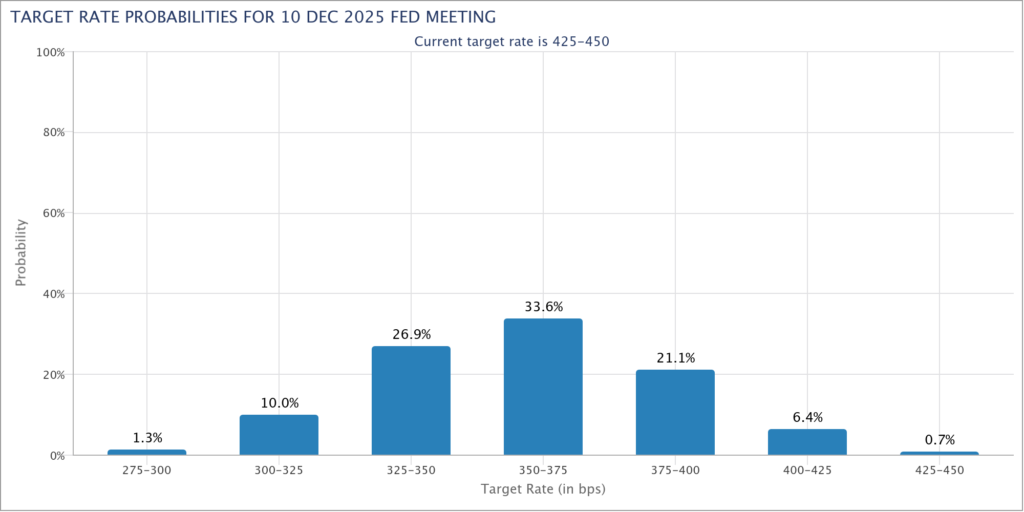 علاوه بر این، معاملهگران اوراق قرضه اکنون حداقل ۳ نوبت کاهش نرخ بهره توسط فدرال رزرو را تا پایان سال پیشبینی میکنند، در حالی که احتمال نوبت چهارم نیز بهطور فزایندهای در حال افزایش است. کاهش نرخ بهره بهطور تاریخی برای بیت کوین صعودی بوده است.