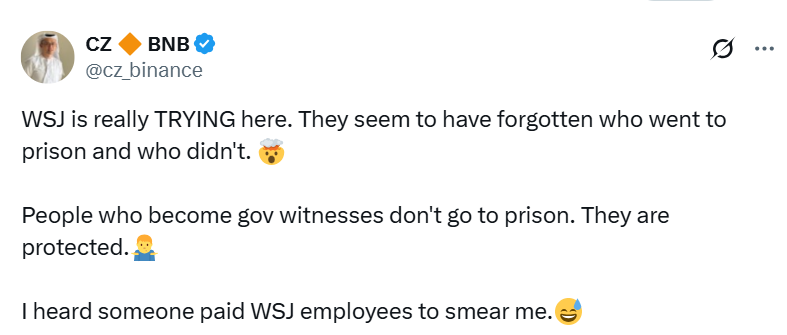 به گزارش میهن بلاکچین، روز گذشته رسانه والاستریت ژورنال به نقل از منابع ناشناس مدعی شده بود که CZ طبق مفاد توافقش با دادستانهای آمریکایی، پذیرفته است علیه جاستین سان شهادت دهد.