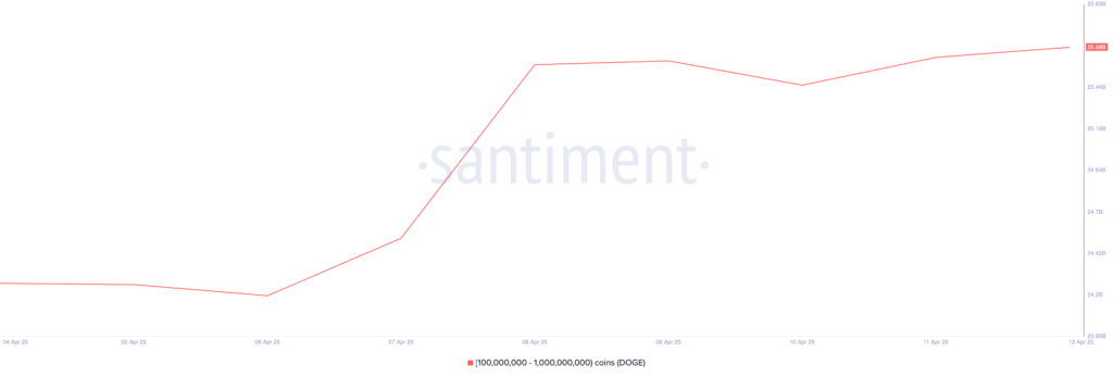 دوج کوین که بزرگترین میم کوین بازار کریپتو است این هفته به طور خاص مورد توجه نهنگها قرار گرفته است. دادههای شرکت تحلیلی سنتیمنت نشان میدهد که آدرسهایی که بین ۱۰۰ میلیون تا ۱ میلیارد واحد دوج کوین در اختیار دارند، در هفت روز گذشته بهشدت دست به خرید زدهاند.