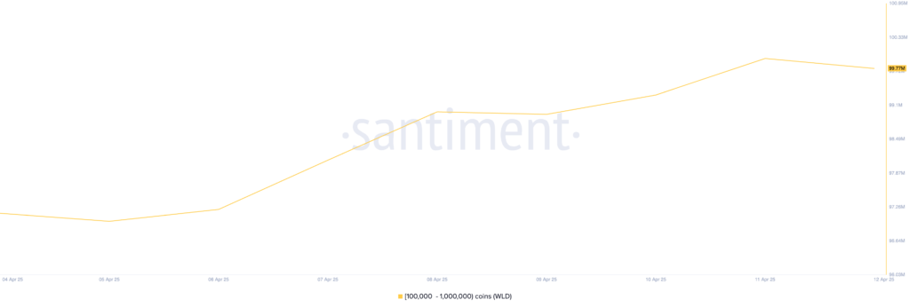 با این حال، در همین بازه زمانی، آدرسهایی که بین ۱۰۰ هزار تا ۱ میلیون واحد WLD در اختیار دارند، بیش از ۲.۶۳ میلیون واحد توکن خریداری کردهاند که ارزشی بیش از ۱.۹۴ میلیون دلار دارد.