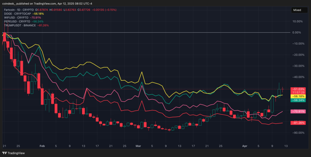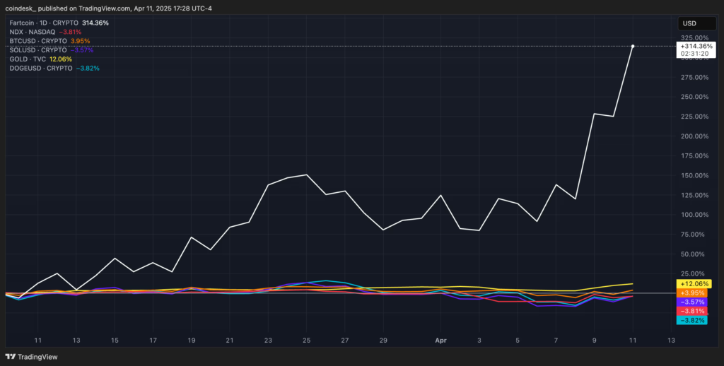 در مقایسه، قیمت بیت کوین تقریباً ثابت ماند و طلا — که معمولاً پناهگاه امن سرمایهگذاران در دوران بحران است — تنها ۱۲٪ رشد را تجربه کرد. این یعنی Fartcoin نهتنها بسیاری از داراییهای دیجیتال، بلکه حتی کالاهایی مانند طلا را نیز در عملکرد پشت سر گذاشته است.