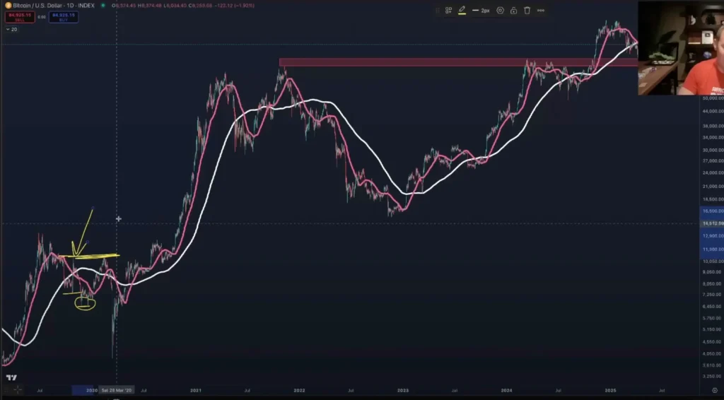 پس خبر خوب این است که چون واقعاً هنوز وارد آن محدوده نشدهایم، اگر سقوط دیگری رخ دهد، تصور میکنم که حداقل مقداری حمایت در آنجا باشد و بعد میتواند به یک جهش بزرگ بر خلاف روند منجر شود. در آن زمان قیمت BTC بهسرعت از سقف رالی پس از تقاطع مرگ عبور خواهد کرد. این حرکت میتواند قویتر یا پایدارتر از دفعه قبل باشد.
