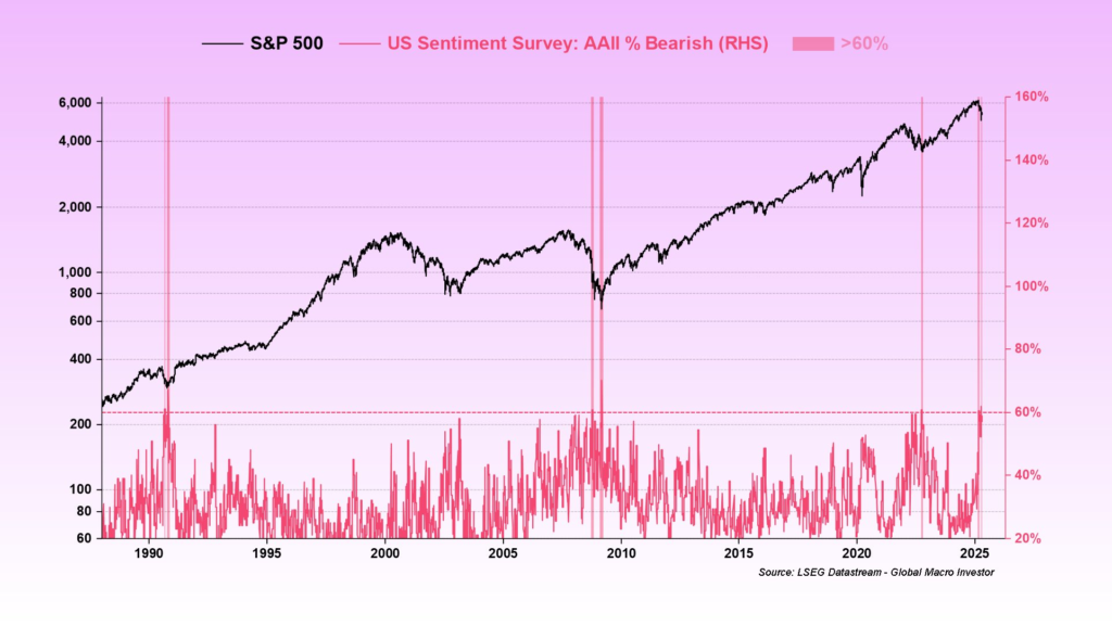 بیتل توضیح داد که پس از رسیدن VIX به سطح ۶۰ در هفته گذشته، میزان بلاتکلیفی به اوج رسیده است و این موضوع به شکل طبیعی در ذهن سرمایهگذاران ترس ایجاد میکند. او به بررسی نظرسنجی «هوش سرمایهگذاران آمریکا» نیز پرداخت و اظهار داشت که درصد خوشبینی فعلی تنها ۲۳.۶٪ است که پایینترین میزان از دسامبر ۲۰۰۸ به شمار میرود.