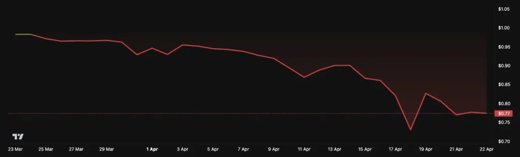 با این حال، اخیرا sUSD دچار دی پگ شدن طولانیمدت شده است. . در زمان نگارش مطلب، این توکن با قیمت ۰.۷۹۹ دلار معامله میشد و این وضعیت از اواخر مارچ سال ۲۰۲۵ ادامه دارد. دلیل اصلی این اتفاق، خروج یک تامینکننده بزرگ نقدینگی از استخر sBTC/wBTC در کرو (Curve) بود که باعث فشار فروش شدید روی sUSD شد. کاربران ناچار شدند برای دریافت توکنهای sUSD، داراییهای مانند sETH یا sBTC را بفروشند که همین موضوع باعث شدیدتر شدن افت قیمت شد.