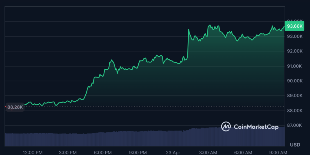 قیمت بیت کوین در زمان نگارش مطلب معادل ۹۳,۴۳۴ دلار است که نسبت به روز پیش حدوداً ۶٪ افزایش یافته است. این رشد قیمت پس از آن رخ داد که بسنت (Bessent) – وزیر خزانهداری آمریکا – در اظهاراتی بیان کرد که تنشهای تعرفهای واشنگتن و پکن «پایدار نیست» و احتمالاً کاهش مییابد.