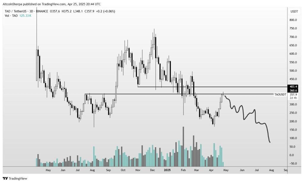با این حال، بیشتر آلت کوینها – مانند TAO – هنوز ساختارهای نزولی دارند و روند غالب همچنان نزولی است.