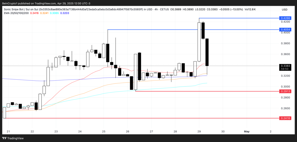 توکن بومی این ربات ،یعنی SONIC، در هفت روز گذشته ۲۷٪ افزایش یافته و ارزش بازار آن به حدود ۱.۷ میلیون دلار رسیده است. اگر روند صعودی ادامه یابد، سونیک میتواند به بالای سطح ۰.۴ دلار رسیده و حتی سطح ۰.۴۲۶ دلار را نیز هدف قرار دهد.