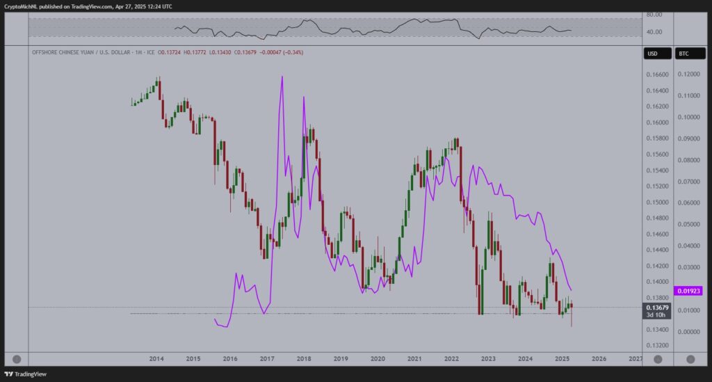 تحلیلگر محبوب اکنون معتقد است CNH/USD پس از آشفتگی تعرفهها به کف خود رسیده و این موضوع، میتواند زمینه را برای آغاز یک روند صعودی واقعی در اتریوم و آلت کوینها فراهم کند. او نوشت:
