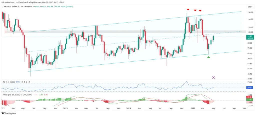 قیمت لایت کوین از کفهای ماه آپریل بهخوبی رشد کرده و اکنون به مقاومت کلیدی ۱۰۰ دلاری نزدیک شده است. شکست این مقاومت میتواند جهت روند آینده را مشخص کند.