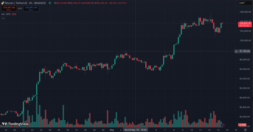 قیمت بیت کوین در طول ۲۴ ساعت گذشته ۰.۲۷٪ کاهش یافته و در زمان نگارش مطلب، به ۱۰۳,۸۴۷ دلار رسیده و همچنین قیمت آفیشال ترامپ در طول روز گذشته ۷.۷۸٪ افت کرده و معادل ۱۲.۹۵ دلار است.