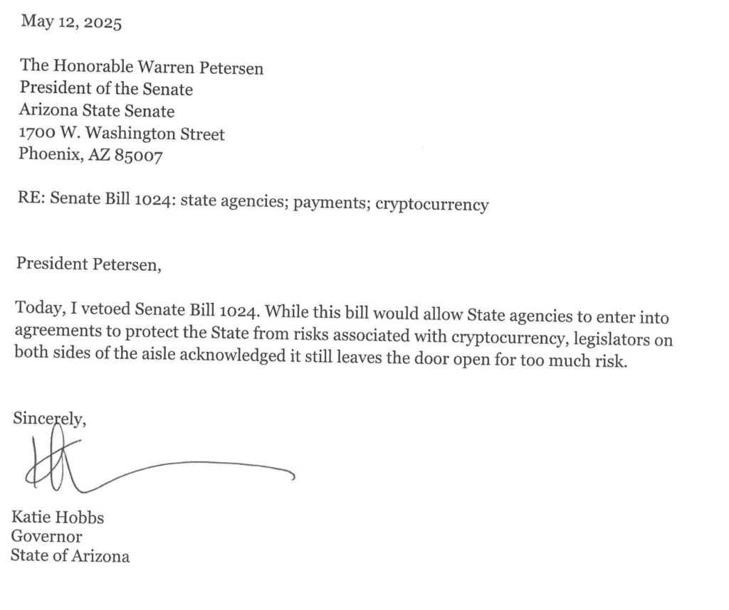 کتی هابز (Katie Hobbs)، فرماندار ایالت آریزونا، دو لایحه مهم مرتبط با گسترش استفاده از ارزهای دیجیتال در این ایالت را وتو کرد. همزمان، هابز قانونی سختگیرانه را برای فعالیت خودپردازهای بیت کوینی در این ایالت تصویب کرده تا با کلاهبرداریهای سایبری مقابله کند.