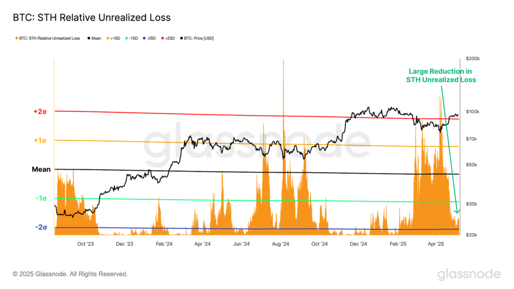 این آسودگی خاطر مالی و روانی در حال حاضر به رفتارهای مصرفی نیز سرایت کرده است. اختلاف خالص بین حجم انتقال بیت کوین توسط هولدرهای کوتاهمدت در حالت سود و زیان، بهطور قابل توجهی به ٪۲۰+ تغییر یافته که این یک چرخش معنادار نسبت به وضعیت ٪۲۰- در دوره تسلیم بازار در پایان آوریل محسوب میشود.