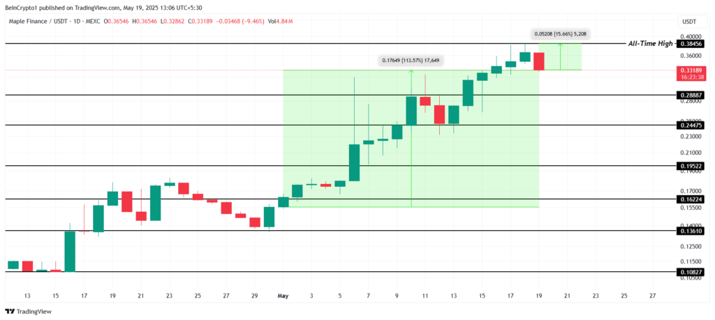 توکن میپل فایننس (Maple Finance) در طول ۳۰ روز گذشته ۱۲۶.۷٪ افزایش یافته و حالا با قیمت ۰.۳۶۴ دلار معامله میشود. این عملکرد قوی باعث شده یکی از بهترین آلت کوینها از نظر بازدهی باشد. رشد شدید آن نشان میدهد توجه سرمایهگذاران به این توکن جلب شده و قدرت حرکت بالایی دارد.