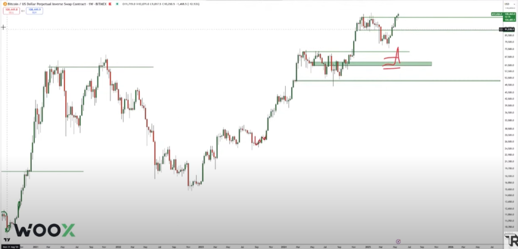 یکی از تحلیلگران ارزهای دیجیتال هشدار داده که ممکن است سقف قیمتی بیت کوین، مشابه سال ۲۰۲۱ بوده و روند صعودی بهطور ناگهانی پایان یابد. او گفته اگر قیمت بیت کوین نتواند بالای سطحی مهم باقی بماند، تمام پیشبینیها درباره ادامه روند صعودی بیاعتبار میشود.