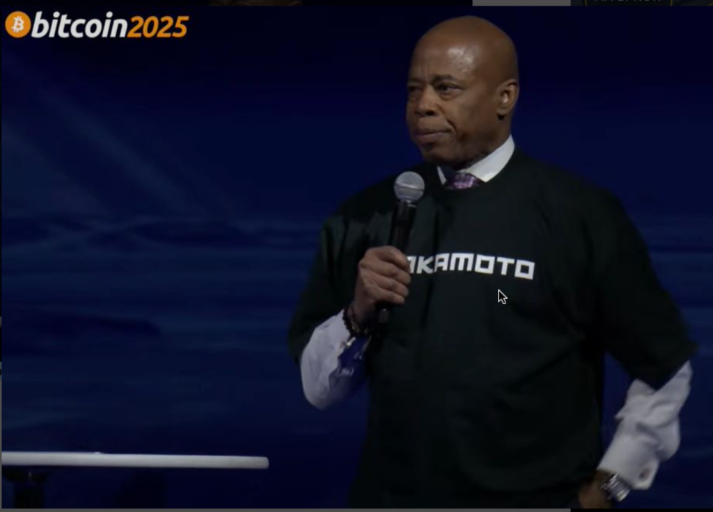 اریک آدامز در تاریخ ۲۸ می (۷ خرداد)، در کنفرانس بیت کوین ۲۰۲۵ (Bitcoin 2025) که در شهر لاسوگاس برگزار شد، اعلام کرد که قصد دارد نوعی اوراق قرضه شهری ارائه کند که پشتوانه آن BTC است. او نام این اوراق را بیتباند (Bitbond) گذاشته است. آدامز در این کنفرانس همچنین بار دیگر خواستار لغو برنامه بیتلایسنس (BitLicense) ایالت نیویورک شد.