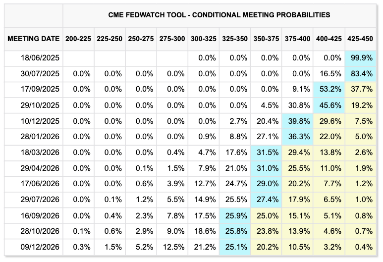 بر اساس گزارشی که پیشتر منتشر شده بود، دادههای ابزار FedWatch متعلق به گروه CME نشان میدهد که بازارها احتمال بسیار کمی برای کاهش نرخ بهره پیش از نشست ماه سپتامبر فدرال رزرو قائل هستند و انتظار ۱٪ کاهش کامل که ترامپ خواستار آن بوده، بهطور کامل منتفی شده است.