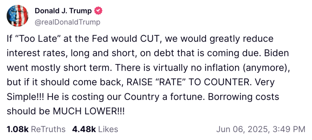 در حالی که بازارها از ضررهای ناگهانی ناشی از درگیری لفظی اخیر میان دونالد ترامپ، رئیسجمهور سابق ایالات متحده و ایلان ماسک، مدیرعامل اسپیسایکس، بازیابی کرده بودند، تمرکز تحلیلگران به نشانههای جدید تورمی معطوف شد، زیرا ترامپ توجه خود را متوجه فدرال رزرو کرد.
